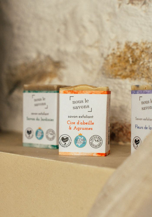 Savon bio exfoliant – Cire d'abeille & Agrumes